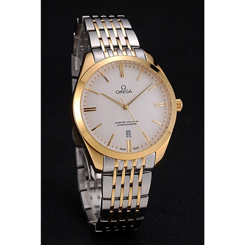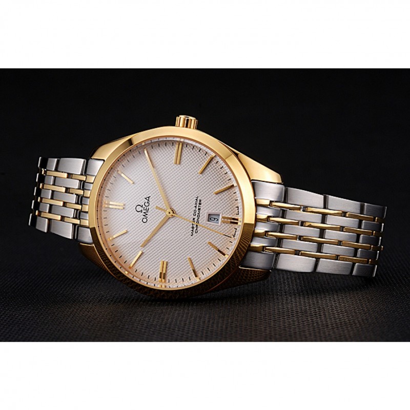 Omega Tresor Master Co-Axial White Dial Gold Case Two Tone Stainless Steel Bracelet Replica Watches