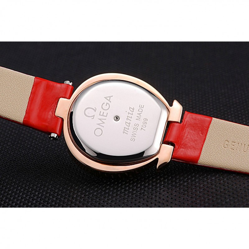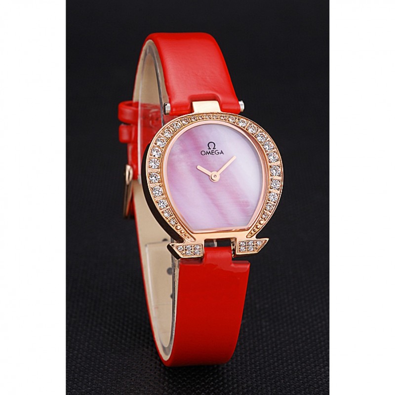 Omega Ladies Watch Pink Dial Gold Case With Diamonds Red Leather Strap 622831 Replica Watches